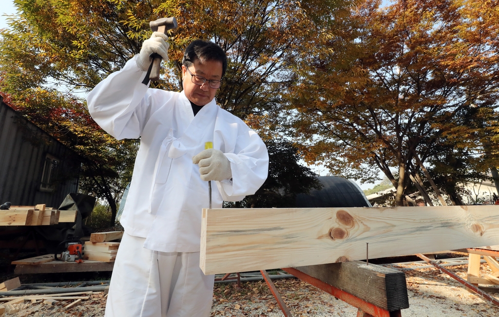 | ▲ 작업하는 이연훈 대목장 [촬영 천경환 기자] |