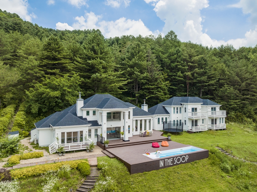 | ▲ '인더숲 BTS편 시즌 2' 촬영지. 이번 이벤트에서는 왼쪽의 메인동과 수영장 등 부대시설만 개방된다. [에어비앤비 제공, 재판매 및 DB 금지] |
