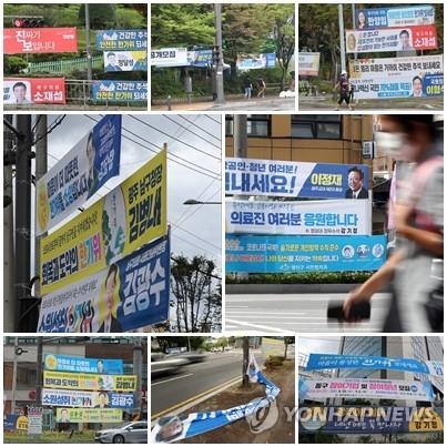 법에서 정한 요건을 갖춘 일부 현역 정치인들의 정당 현수막만 간혹 눈에 띄는 정도다.