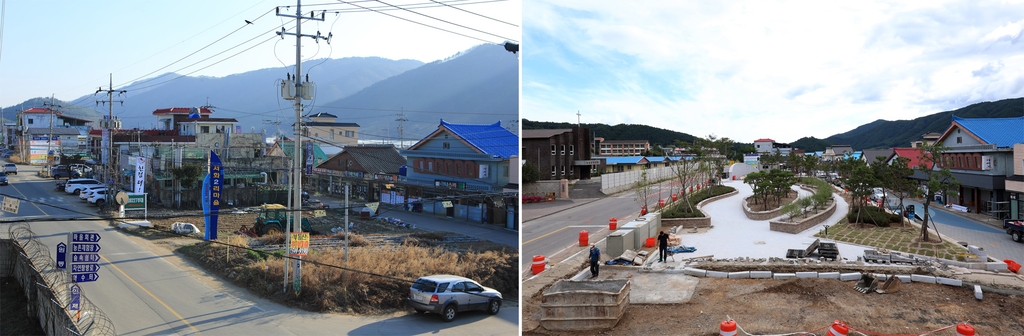 | ▲ 서화 만남의 광장 조성 전(왼쪽)과 후 [인제군 제공. 재판매 및 DB 금지] |