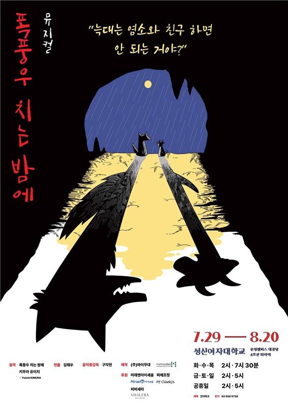 마이무대는 오는 29일부터 8월 20일까지 서울 성신여자대학교 운정그린캠퍼스에서 뮤지컬 '폭풍우 치는 밤에'를 공연한다.