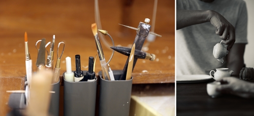 | ▲ 홍성일·이혜진 도예가 부부의 공방 도구와 작품 [촬영 형민우(왼쪽)·홍성일 도예가 제공(오른쪽)] |