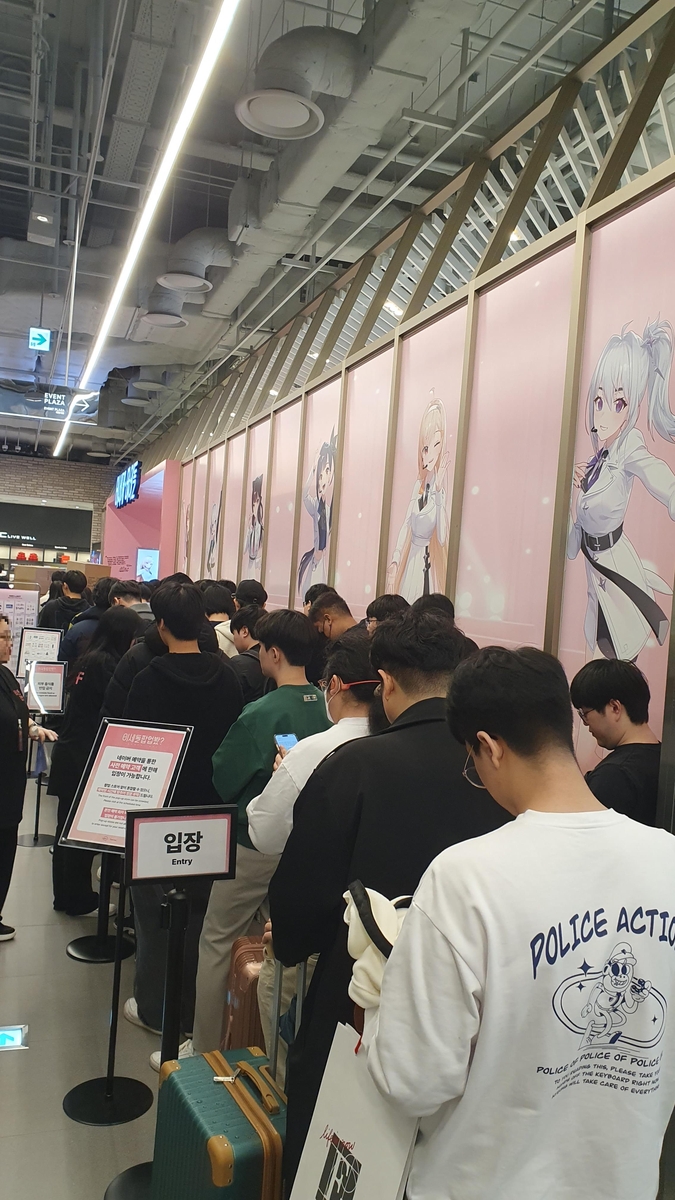 더현대 서울에는 NCT 위시 말고도 인기 버추얼(가상) 걸그룹 이세계아이돌 팝업스토어도 열려 수십 명의 팬들로 북적였다.