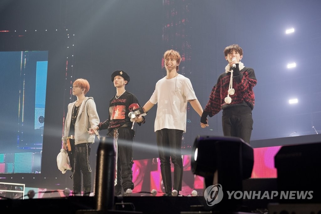 | ▲ This photo, provided by Around Us, shows boy band Highlight performing at the KSPO Dome during a set of concerts held on Nov. 24-25, 2018, in eastern Seoul before members enlisted in the military. (PHOTO NOT FOR SALE) (Yonhap) |