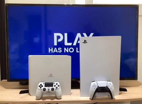 | ▲ 게임 콘솔 '플레이스테이션4'(왼쪽)와 '플레이스테이션5'(오른쪽) 비교. [촬영 이효석] |