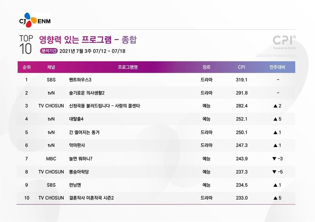 | ▲ 7월 셋째 주 CPI 리포트 [CJ ENM 제공. 재판매 및 DB 금지] |