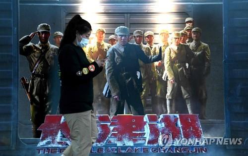 | ▲ 10월 11일 중국 베이징에서 한 여성이 영화 장진호 포스터 옆을 지나가고 있다. [AFP=연합뉴스 자료사진] |