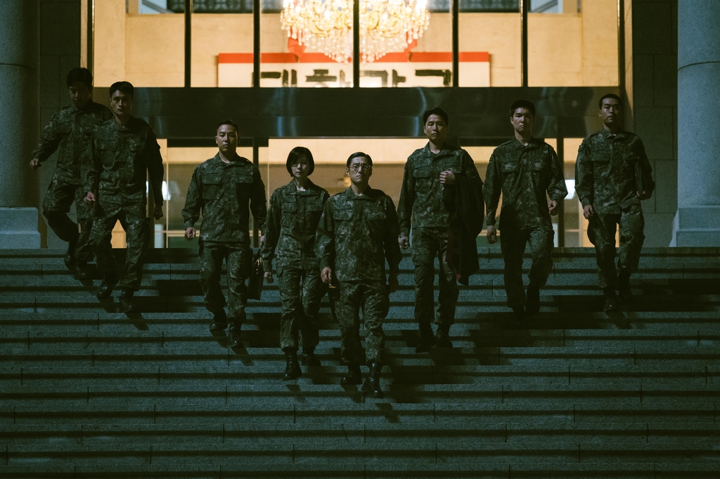 (창원=연합뉴스) 정종호 기자 = 넷플릭스 오리지널 시리즈 'D.P. 시즌 2'(이하 디피)에서 군 수뇌부들이 국군본부 계단을 내려오는 장면.