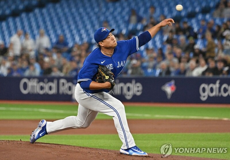 | ▲ 류현진, 텍사스전서 시즌 첫 QS 달성 (토론토 로이터·USA TODAY=연합뉴스) 토론토 블루제이스 류현진이 12일(현지시간) 캐나다 온타리오주 토론토 로저스센터에서 열린 2023 미국프로야구 메이저리그(MLB) 텍사스 레인저스와 홈 경기 1회에 선발투수로 나서고 있다. 류현진은 이날 시즌 첫 퀄리티스타트(선발 6이닝 이상 3자책점 이하 투구·QS)를 달성했다. 2023.09.13 danh2023@yna.co.kr |
