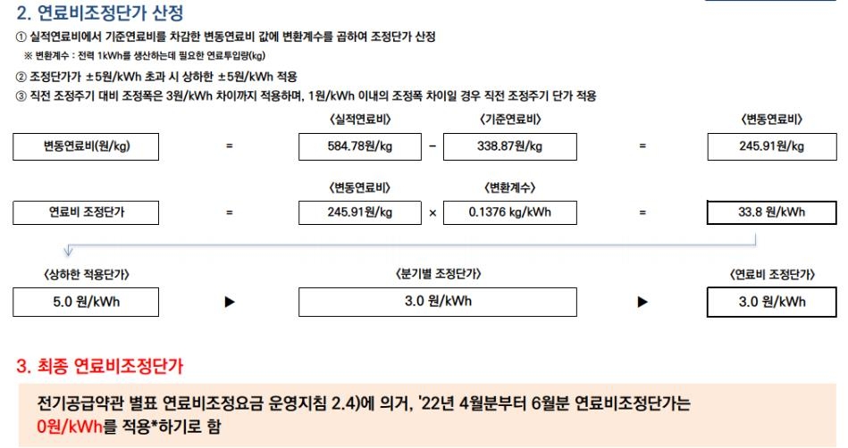 | ▲ 연료비 조정단가 산정 내역 [한국전력 제공. 재판매 및 DB 금지[ |