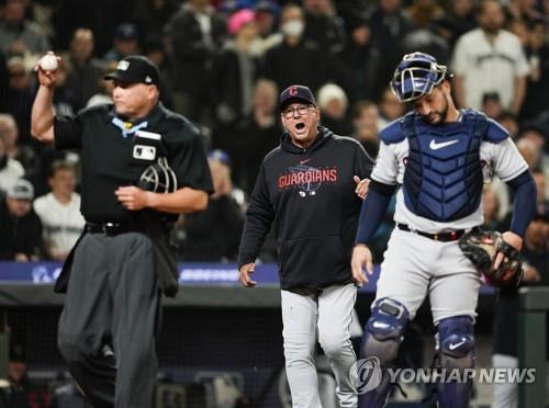 | ▲ 투수의 피치클록 위반이 선언되자 항의하는 클리블랜드 감독 [AP=연합뉴스] |