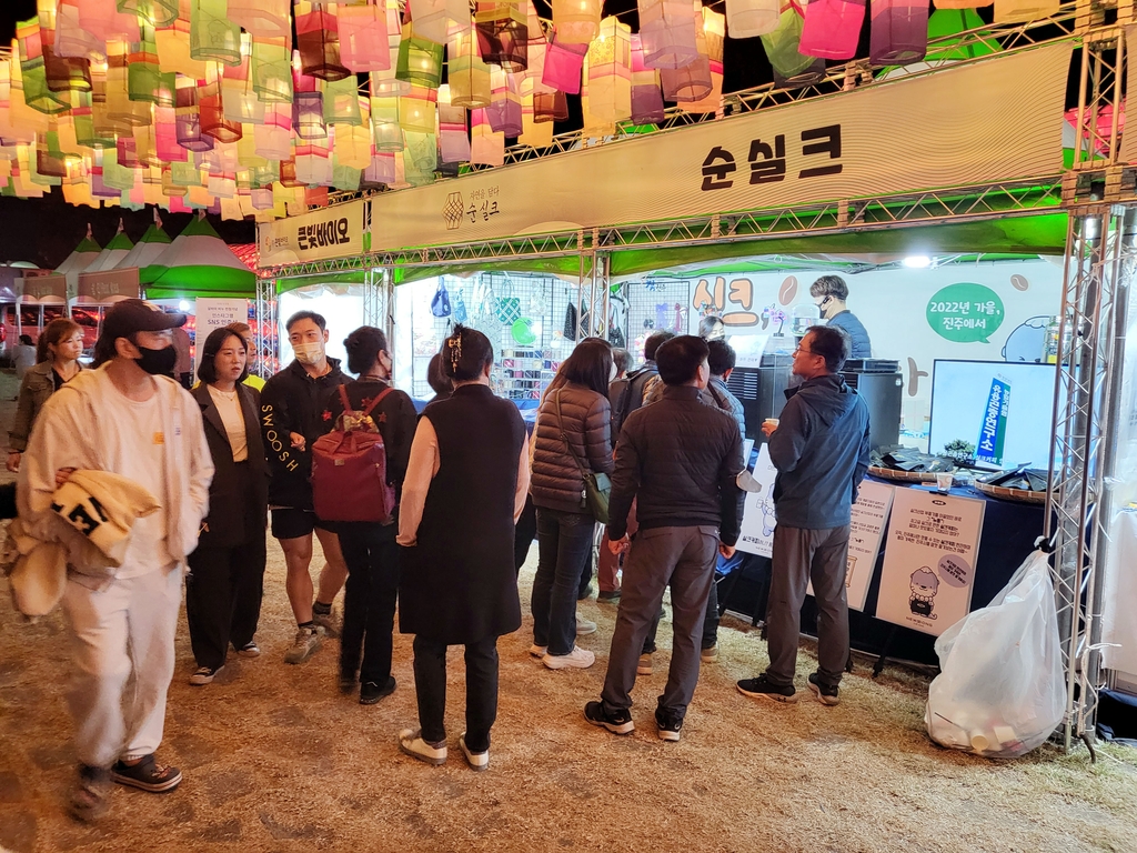 순실크는 2022진주남강유등축제가 열리는 진주 남강 둔치에 부스를 설치하고 시음회를 열면서 기존 가격보다 30∼40% 할인한 100g당 1만3천원에 실크 커피를 판매하고 있다.