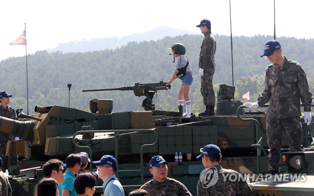 | ▲ 2019년 지상군페스티벌·군문화축제장 (계룡=연합뉴스) 김준범 기자 = 4일 오후 충남 계룡대 비상활주로에서 열린 지상군페스티벌·군문화축제에서 한 어린이가 전시된 장갑차를 타보고 있다. 2019.10.4 psykims@yna.co.kr |