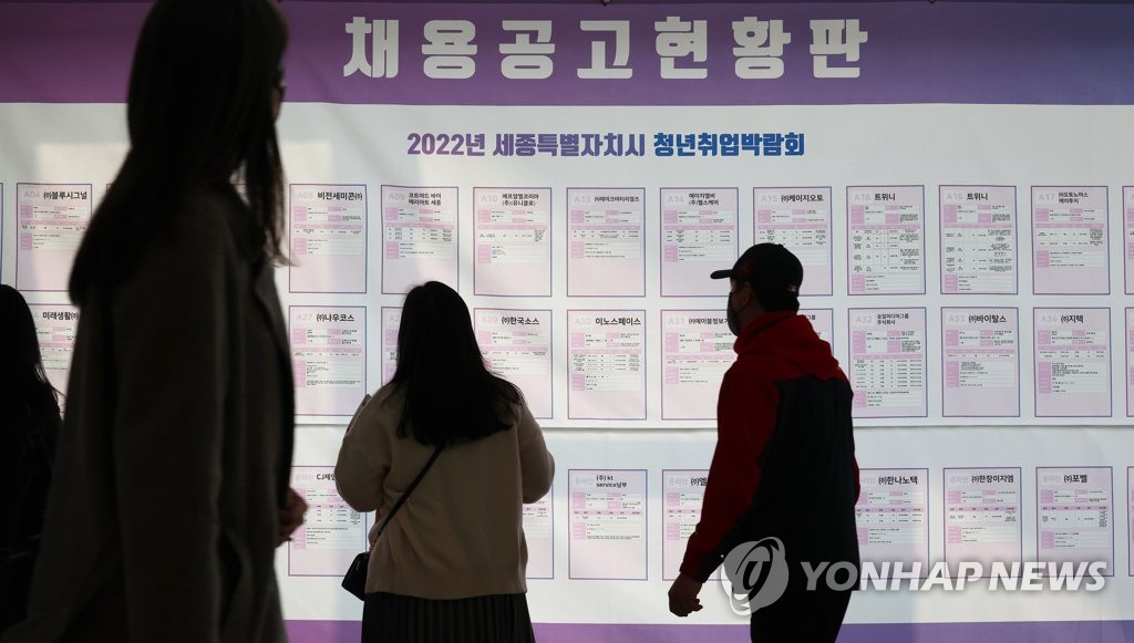 | ▲ Jobseekers look at information at a job fair in the central city of Sejong on Nov. 8, 2022. (Yonhap) |