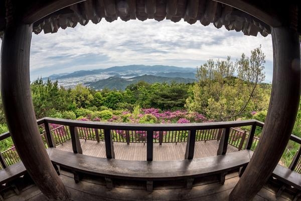 축제일에 맞춰 철쭉이 활짝 펴 신어산을 분홍색으로 물들였다.