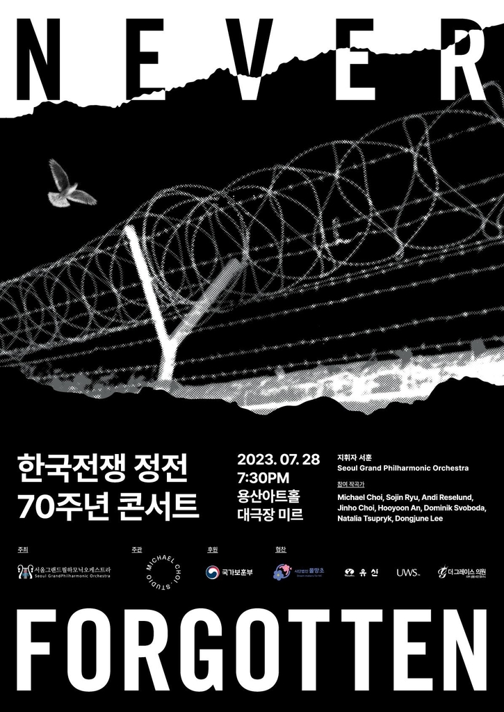 서울그랜드필하모닉오케스트라와 음악감독 마이클 최는 오는 28일 서울 용산구 용산아트홀에서 '절대로 잊혀서는 안 된다'는 의미를 담은 콘서트 '네버 포갓튼(NEVER FORGOTTEN)'을 개최한다고 21일 밝혔다.