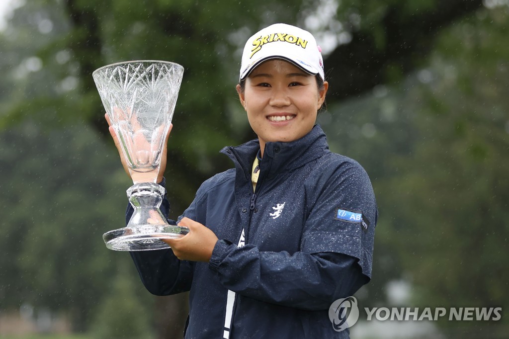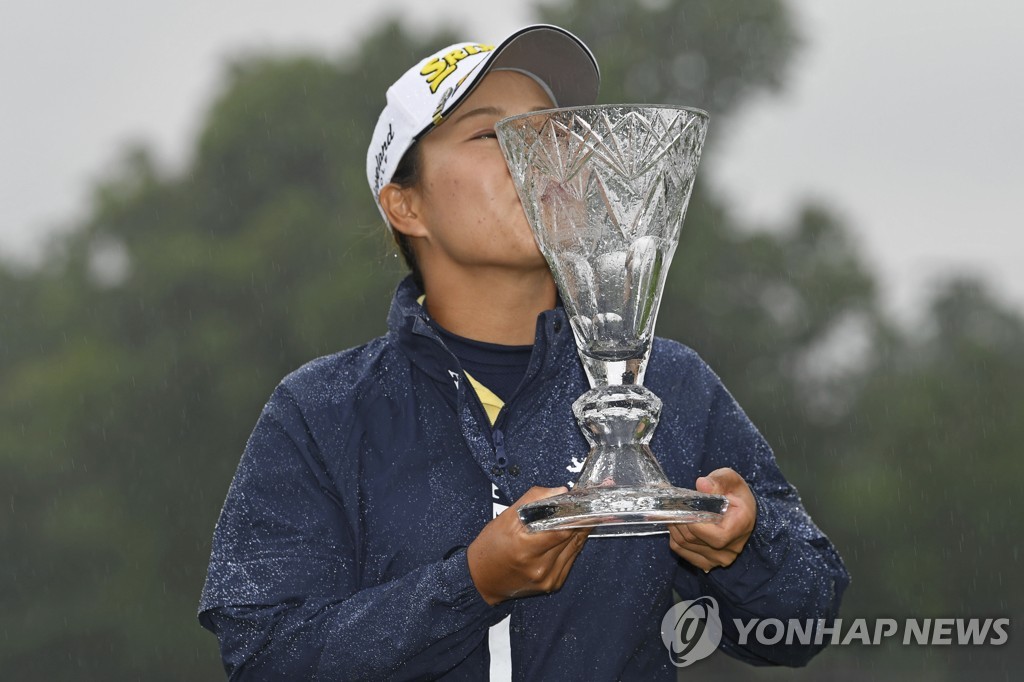 | ▲ 마라톤 클래식 우승컵 든 하타오카 나사 [게티이미지/AFP=연합뉴스] |