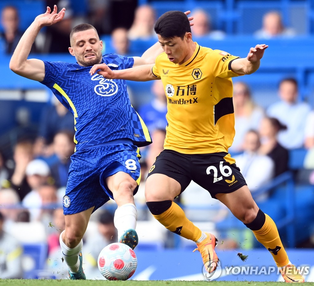| ▲ 첼시전에서 경합하는 울버햄프턴 황희찬(왼쪽) [EPA=연합뉴스] |