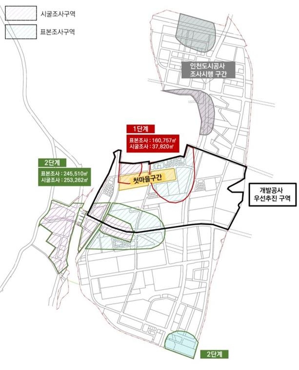 문화재 조사 대상지는 인천시 계양구 귤현·동양·박촌·병방·상야동 일원이다. 시굴 조사와 표본 조사 대상은 각각 29만1천82㎡와 40만6천267㎡다.