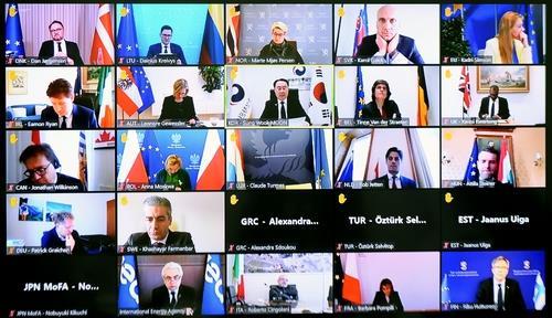 | ▲ This photo, provided by South Korea's industry ministry on March 2, 2022, shows the ministerial-level Extraordinary Governing Board meeting of the International Energy Agency (IEA), which was attended by 31 nations the previous day. During the meeting, the countries agreed to release 60 million barrels of oil from their emergency reserves amid the Ukraine crisis. (PHOTO NOT FOR SALE) (Yonhap) |
