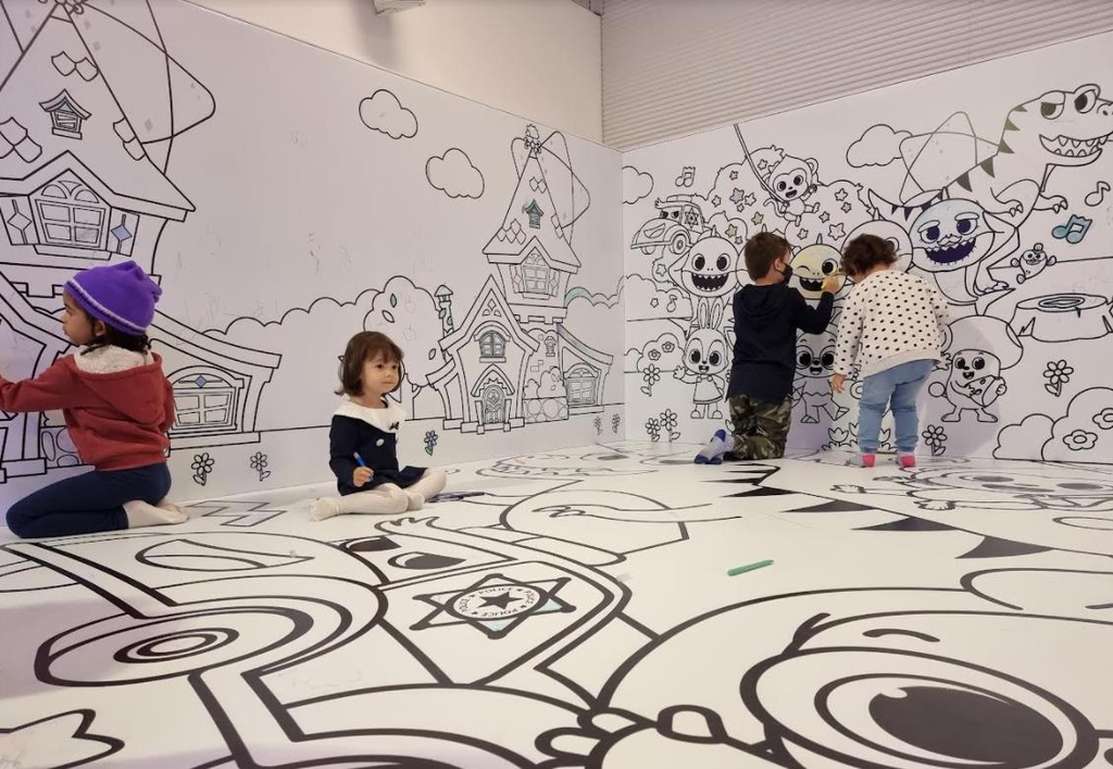 댄스 게임과 퍼즐 게임을 즐길 수 있는 공간이 마련돼 어린이와 청소년들을 불러 모으는가 하면, 핑크퐁 캐릭터 색칠 공간은 유아들의 인기를 독차지하고 있다.