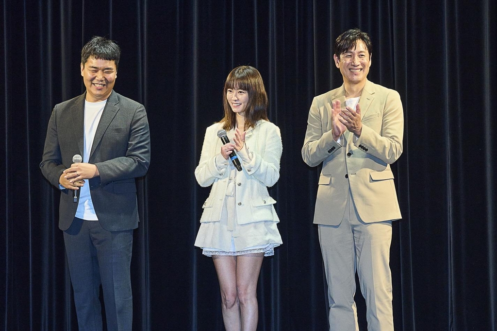 | ▲ 칸영화제 '잠' 상영회 21일(현지시간) 칸에서 열린 '잠' 상영회. 왼쪽부터 유재선 감독, 배우 정유미, 이선균[롯데엔터테인먼트 제공·재판매 및 DB 금지] |