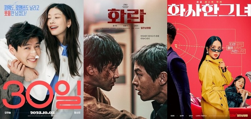 | ▲ 영화 '30일', '화란', '화사한 그녀' 포스터 [마인드마크, 플러스엠엔터테인먼트, 제이앤씨미디어그룹 제공. 재판매 및 DB 금지] |