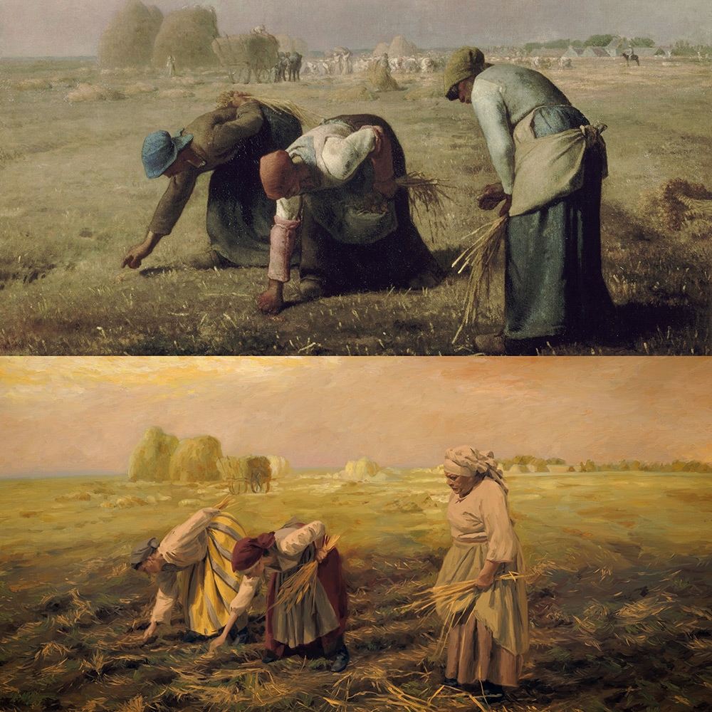 | ▲ 프랑수아 밀레의 '이삭 줍는 사람들'과 영화 '립세의 사계' 속 한 장면 [엔케이컨텐츠 제공. 재판매 및 DB 금지] |