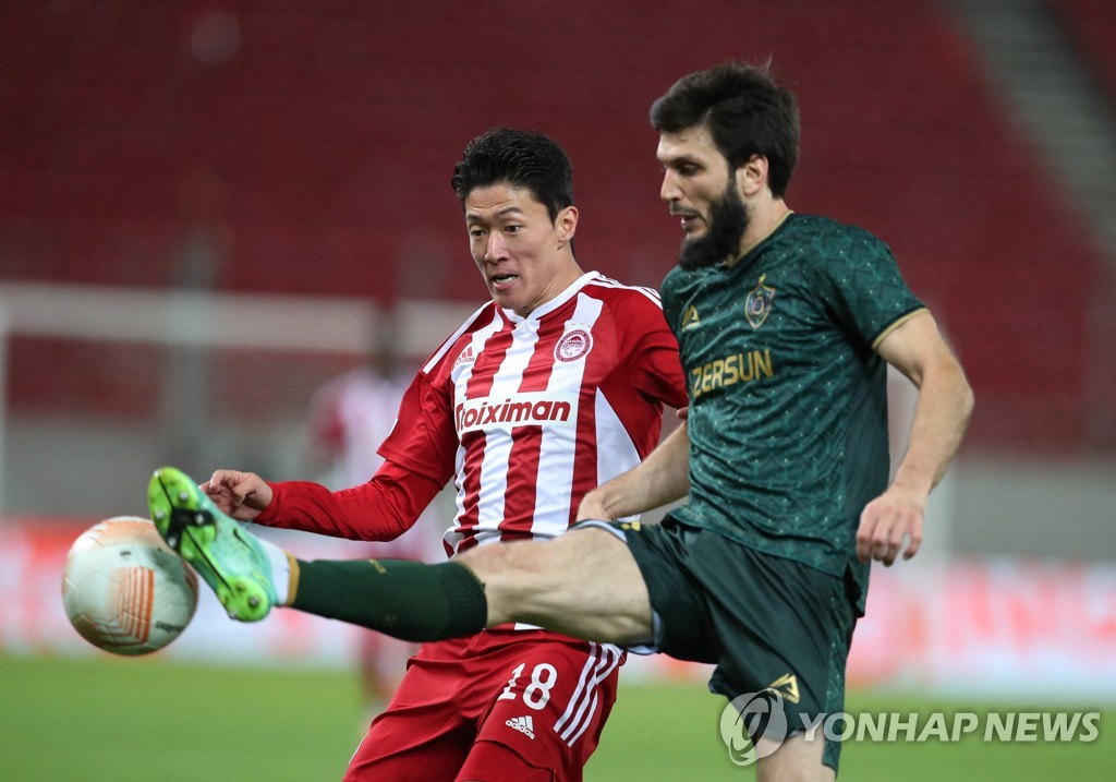 | ▲ 카라바흐와 경기에 나선 올림피아코스 황의조(왼쪽)의 모습. [로이터=연합뉴스] |