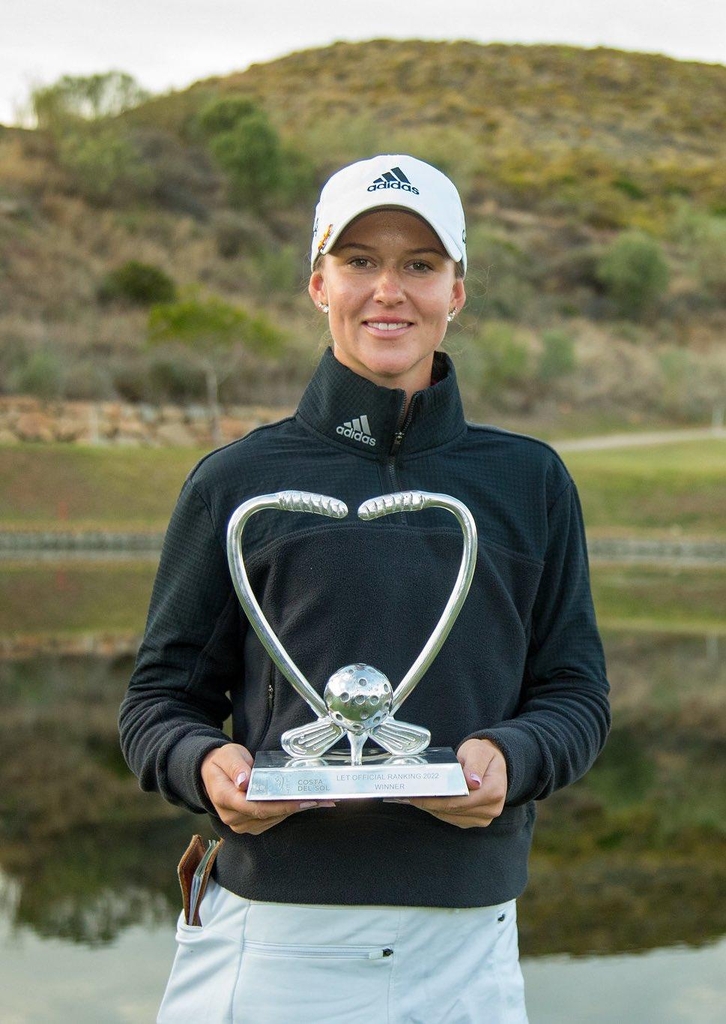 | ▲ LET 2022시즌 코스타 델 솔 레이스 1위 트로피를 든 그란트. [LET 소셜 미디어 사진. 재판매 및 DB 금지] |