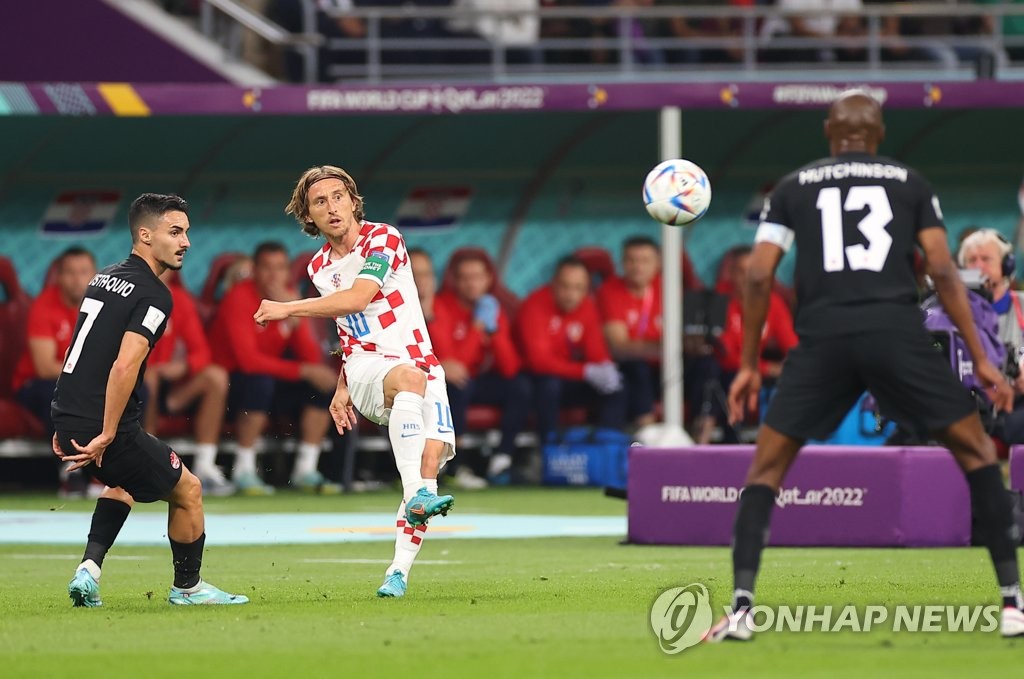 | ▲ 롱패스하는 모드리치 (도하=연합뉴스) 김도훈 기자 = 지난해 11월 27일(현지시간) 카타르 도하의 칼리파 인터내셔널 스타디움에서 열린 2022 카타르 월드컵 조별리그 F조 크로아티아와 캐나다의 경기. 크로아티아 루카 모드리치가 롱패스를 시도하고 있다. 2022.11.28 superdoo82@yna.co.kr |