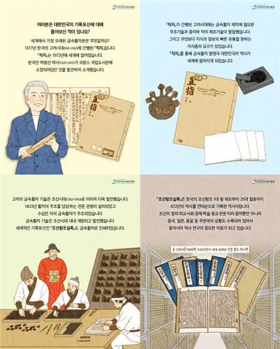 (서울=연합뉴스) 왕길환 기자 = 사이버 외교 사절단 반크는 세계에서 가장 오래된 금속활자본 직지심체요절(직지)과 이 기술로 탄생한 조선왕조실록 등을 알리는 카드 뉴스를 제작해 사회관계망서비스(SNS)에서 배포한다고 7일 밝혔다.