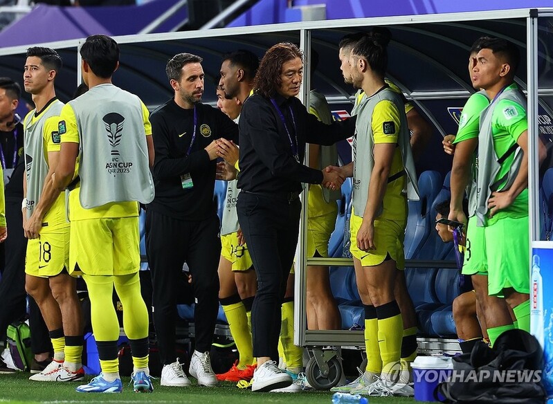 | ▲ 선수들 챙기는 김판곤 감독 (알와크라=연합뉴스) 김도훈 기자 = 15일(현지시간) 카타르 알와크라 알자누브 스타디움 열린 2023 아시아축구연맹(AFC) 아시안컵 조별리그 E조 말레이시아와 요르단 경기가 끝난 뒤 말레이시아 김판곤 감독이 선수들과 악수하며 격려하고 있다. 2024.1.16 superdoo82@yna.co.kr |