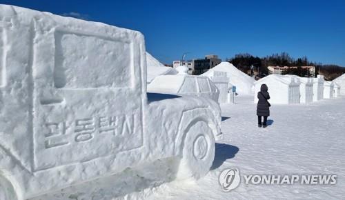 | ▲ In this file photo, a visitor looks at ice sculptures at the venue of the Daegwallyeong Snow Festival in Pyeongchang, Gangwon Province, on Feb. 6, 2022. (Yonhap) |