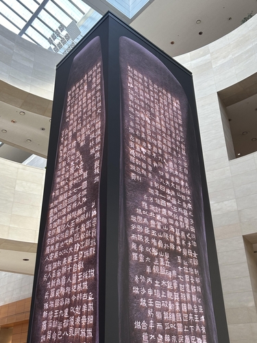 | ▲ This photo shows a digital reproduction of the Gwanggwato the Great Stele, a memorial stele for the tomb of Gwanggaeto the Great of Goguryeo, on display at the National Museum of Korea in central Seoul on Jan. 24, 2024. (Yonhap) |