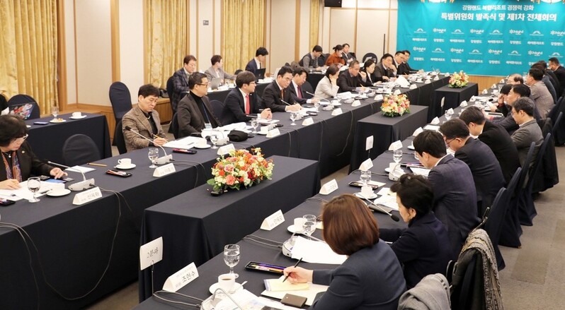 (정선=연합뉴스) 배연호 기자 = '강원랜드 복합리조트 경쟁력 강화 특별위원회'(특위) 발족식이 29일 서울 한국프레스센터에서 열렸다.