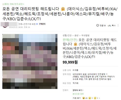| ▲ 대리 티케팅 광고 [온라인중고거래사이트 캡처. 재판매 및 DB 금지 |