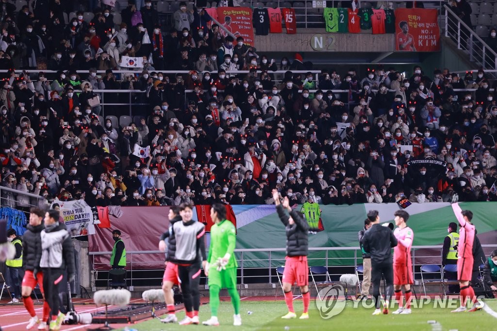 | ▲ South Korean players salute the crowd after beating the United Arab Emirates 1-0 in the teams' Group A match in the final Asian qualifying round for the 2022 FIFA World Cup at Goyang Stadium in Goyang, Gyeonggi Province, on Nov. 11, 2021. (Yonhap) |