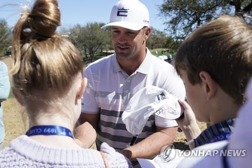 | ▲ 연습 라운드 도중 팬들에게 사인해주는 디섐보. [AFP/게티이미지=연합뉴스] |