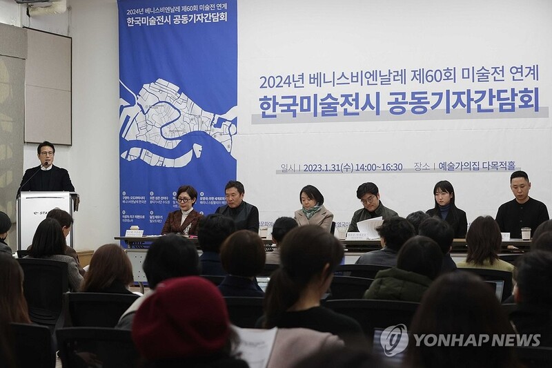 | ▲ 베니스비엔날레 미술전 연계 한국미술 간담회 (서울=연합뉴스) 강민지 기자 = 31일 서울 종로구 예술가의집에서 '2024 베니스비엔날레 제60회 미술전 연계 한국미술 공동기자간담회'가 열리고 있다. 2024.1.31 mjkang@yna.co.kr |