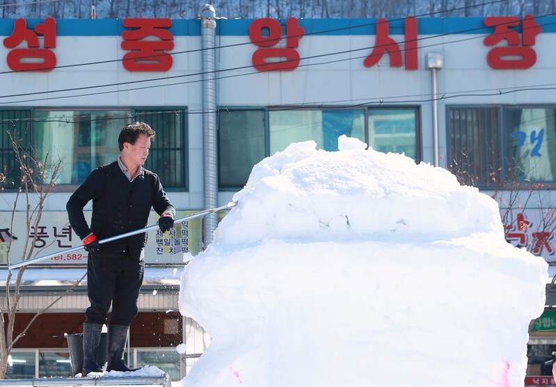 | ▲ 눈 조각 만드는 태백시민 [태백시 제공.재판매 및 DB 금지] |