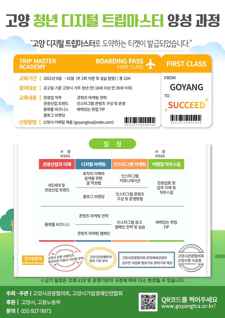 교육 과정 참가 방법 등 자세한 문의는 고양시관광협의회(☎031-927-9974)로 하면 된다.