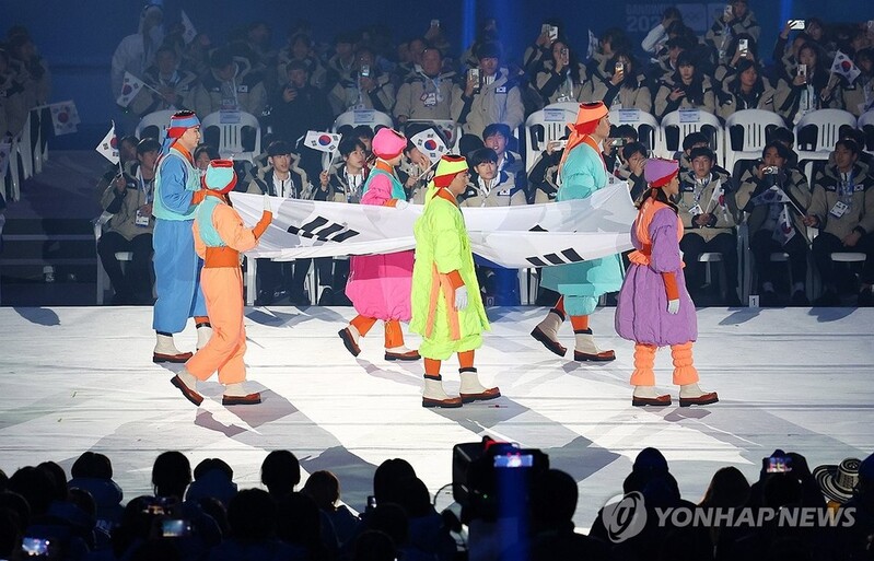 | ▲ 강원동계청소년올림픽 개회식 (강릉=연합뉴스) 진성철 기자 = 19일 강원 강릉시 강릉스피드스케이팅 경기장에서 열린 강원동계청소년올림픽 개회식에서 태극기가 입장하고 있다. 2024.1.19 [대통령실통신사진기자단] zjin@yna.co.kr |
