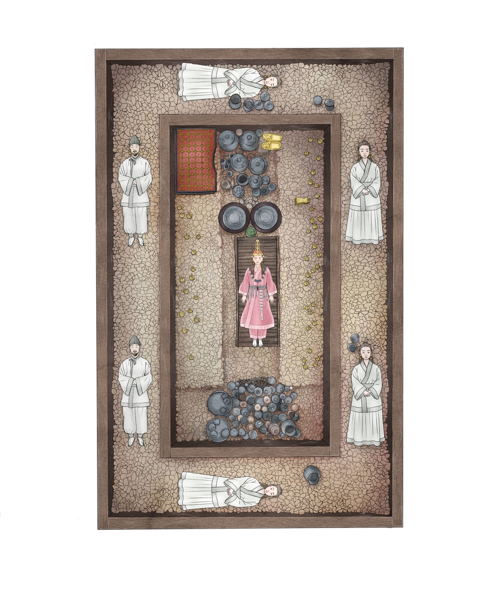| ▲ 공주의 시신과 부장품을 안치한 무덤의 모습 삽화 [국립경주문화재연구소 제공. 재판매 및 DB 금지] |
