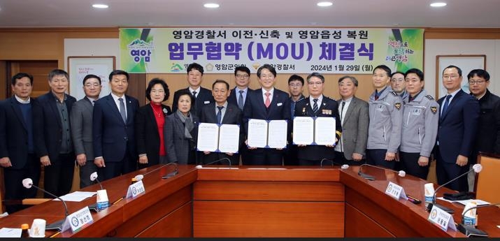 (영암=연합뉴스) 조근영 기자 = 전남 영암군은 영암경찰서와 '영암경찰서 이전·신축 및 영암읍성 복원 업무협약'을 했다고 30일 밝혔다.