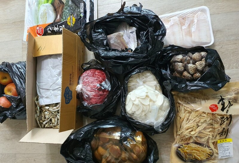 | ▲ 전주 모래내시장서 구매한 20만원어치 물품 [촬영 : 김동철] |