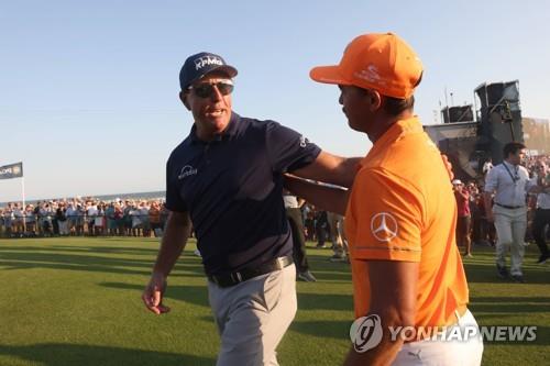 | ▲ 미컬슨(왼쪽)과 파울러. [AFP/게티이미지=연합뉴스] |