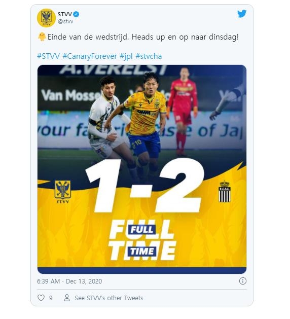신트트라위던은 13일 오전(한국시간) 벨기에 신트트라위던의 스타이언에서 샤를루아와 치른 2020-2021시즌 벨기에 주필러리그 16라운드 홈 경기에서 1-2로 졌다.