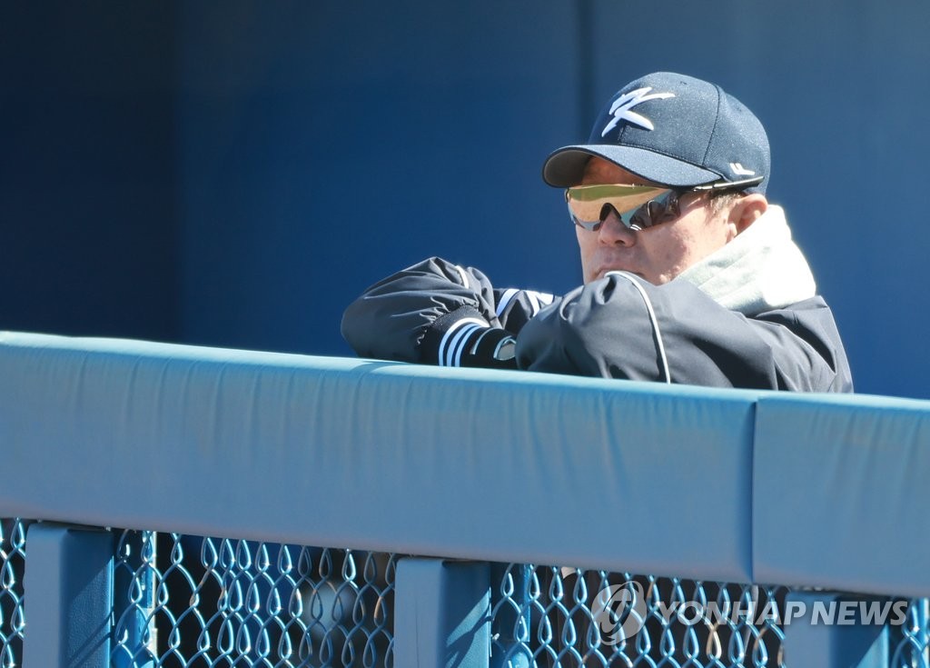 | ▲ South Korea manager Lee Kang-chul watches his team play the NC Dinos in a scrimmage for the World Baseball Classic at Kino Veterans Memorial Stadium in Tucson, Arizona, on Feb. 16, 2023. (Yonhap) |