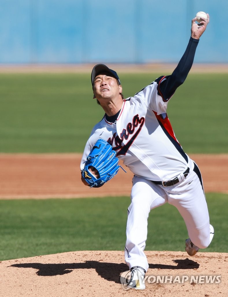 | ▲ Kim Kwang-hyun of South Korea pitches against the NC Dinos during a scrimmage for the World Baseball Classic at Kino Veterans Memorial Stadium in Tucson, Arizona, on Feb. 16, 2023. (Yonhap) |
